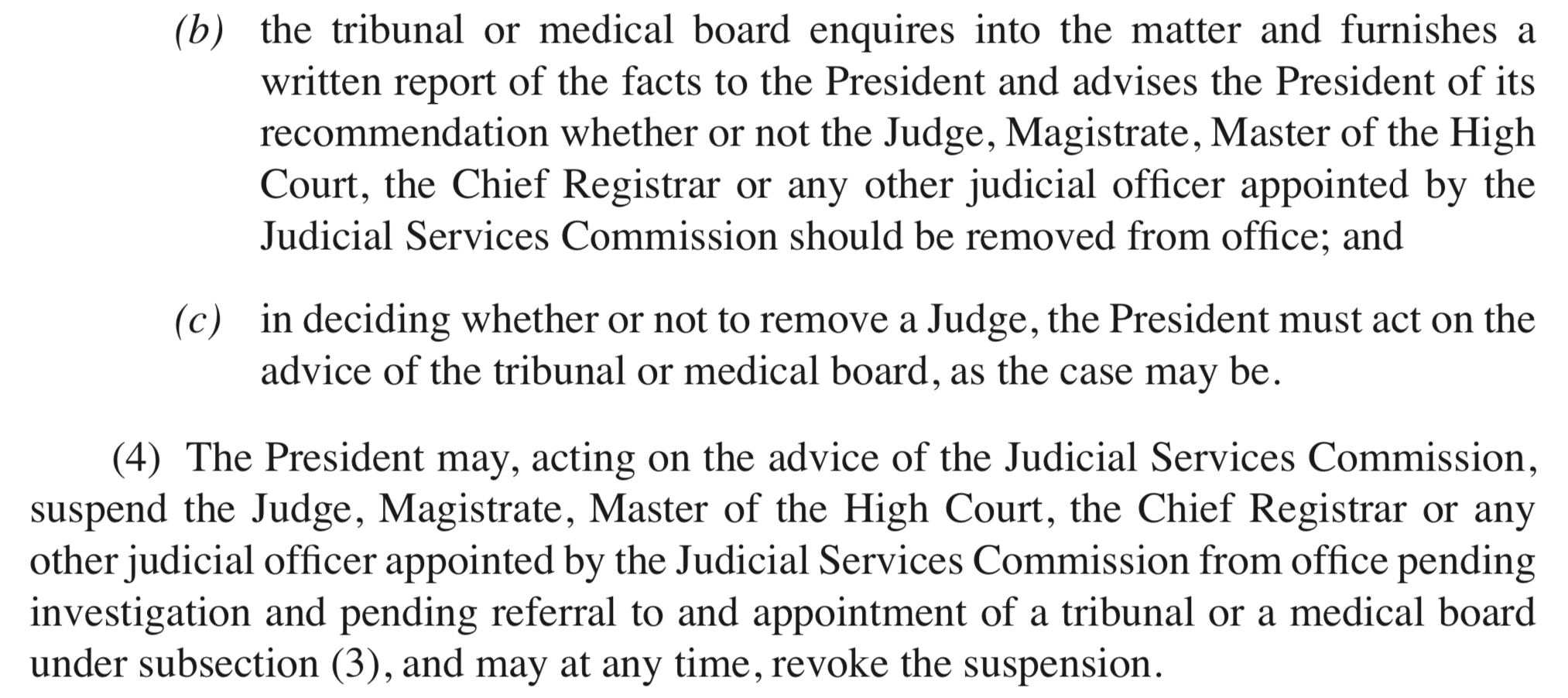 The Constitution requires him to make the Tribunal finding against Christopher Pryde public. It also requires him to lift the suspension against Pryde if he has been found not guilty of misbehaviour – which multiple reports are now saying the Tribunal has ruled – and reinstate him as DPP. The President has done neither.