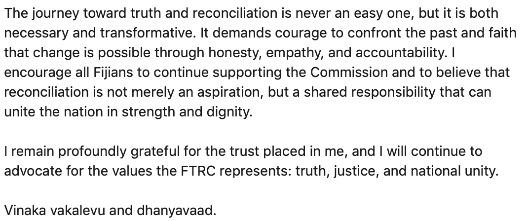 Seriously? The entire nation now knows that Rabuka has no intention of telling the full truth abut the events of 1987 and the entire Trust and Reconciliation process is an expensive farce – underlined by the fact that its chair, Dr Marcus Brand, resigned as the Prime Minister was about to give evidence. Dr Brand gave the customary “personal reasons” for doing so – elderly family members back in Europe.