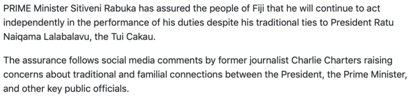 There are currents swirling within the Rabuka government that are starting to spill over even into the supine mainstream media as those around the Prime Minister begin to acknowledge that he is losing his grip.