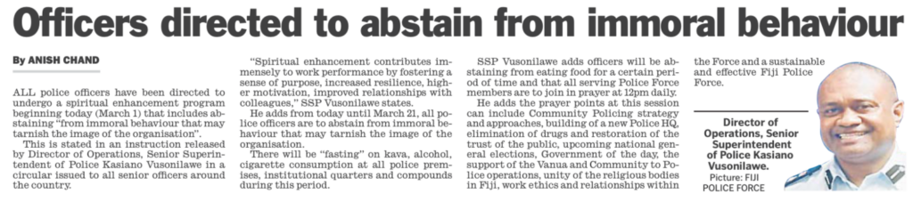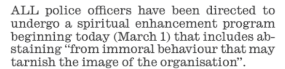 And then right below that article , the police are being “directed to undergo a spiritual enhancement program” to counter a breakdown of moral conduct in the force.