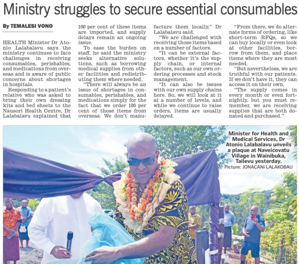 Fortunately for Fijian consumers the private importers of Flour, cooking oil and Epsom Salts do not have the same logistical nightmare in procurement that the Health Ministry is having in getting supplies into Fiji.