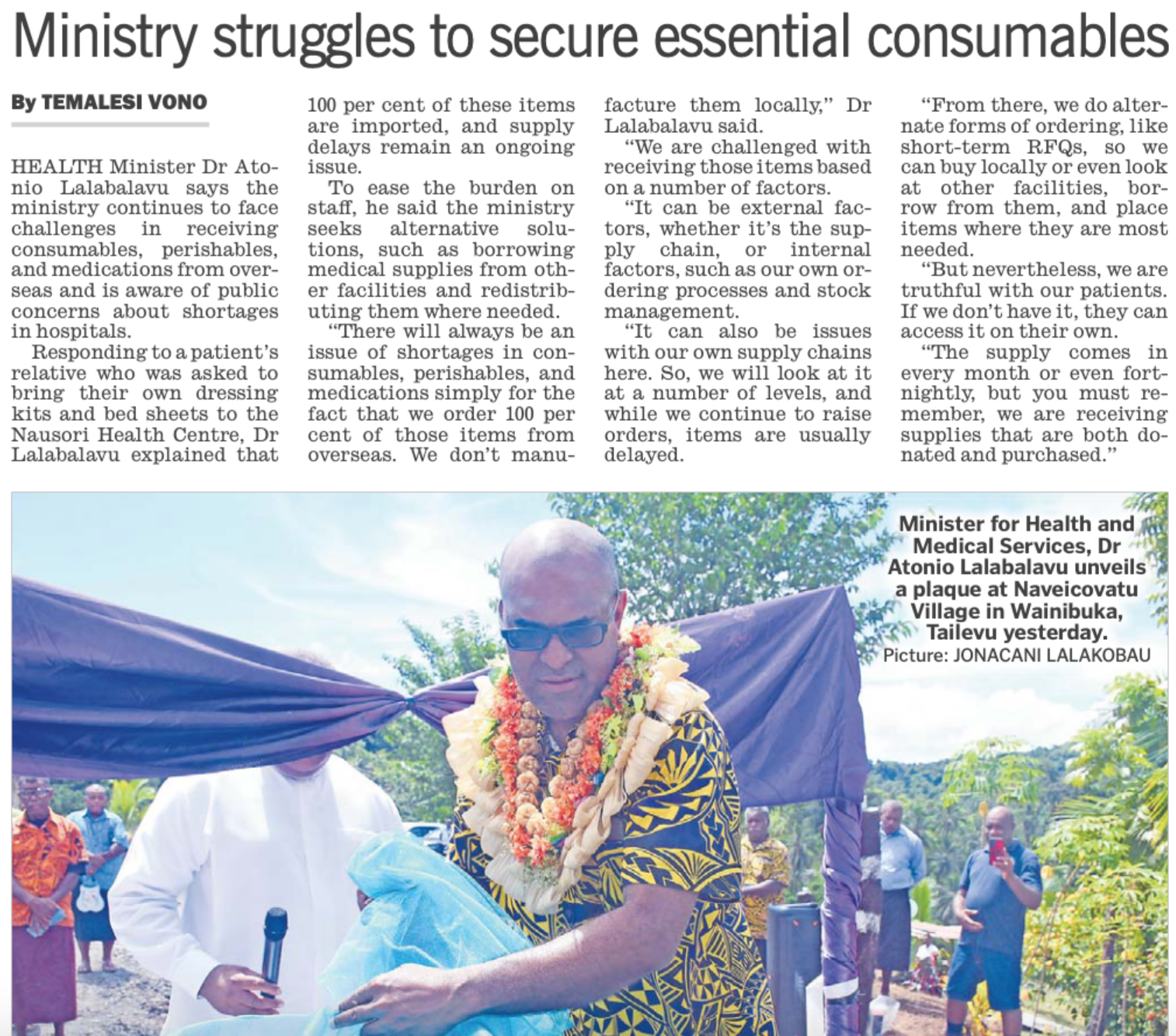 And then down-paper in the Fiji Sun, this: