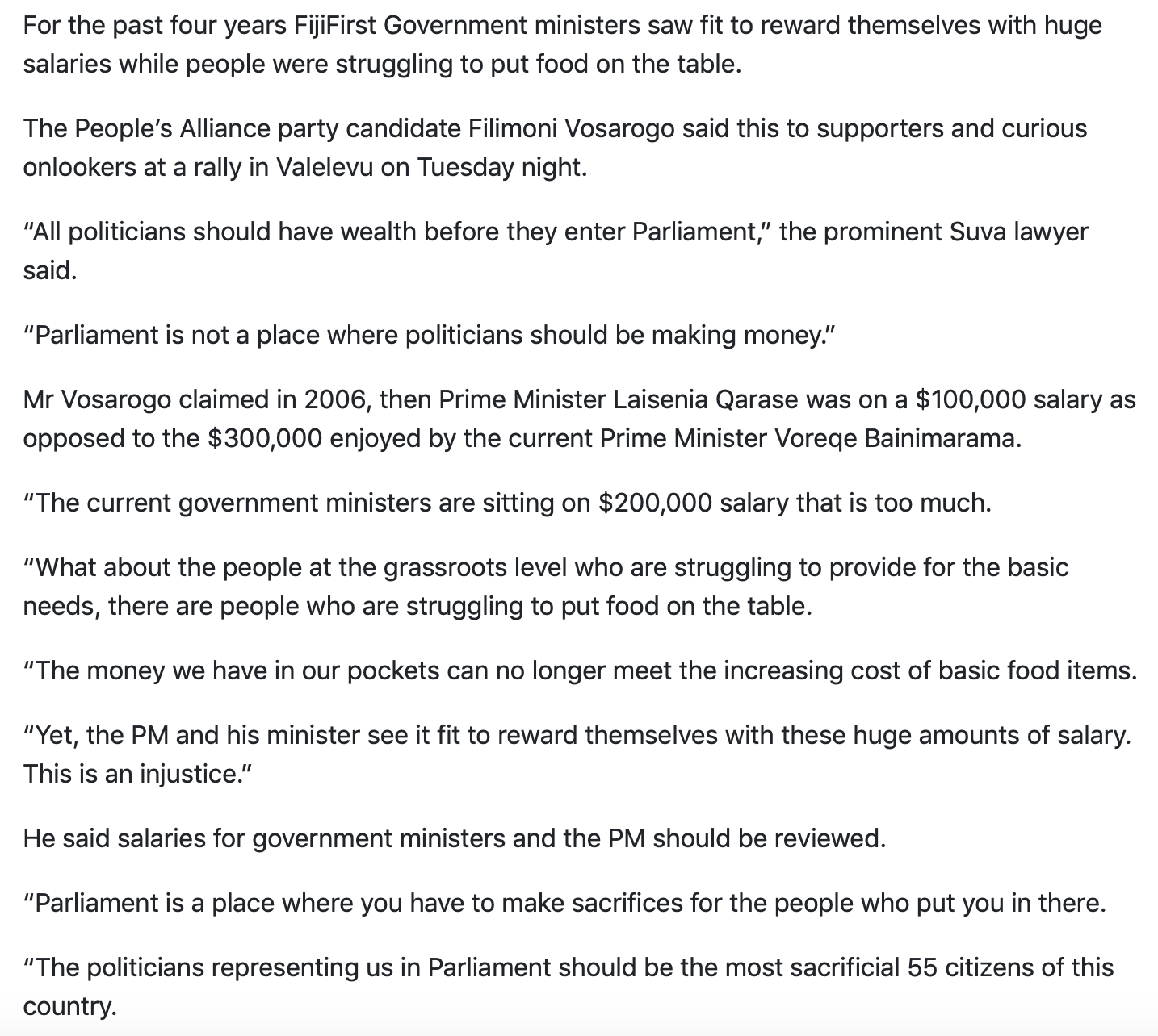 Now I hope you all got that, Fiji. See, here’s the thing. We think you are all so dumb that we can say whatever we like to get your vote and then do whatever we like when we get into power.