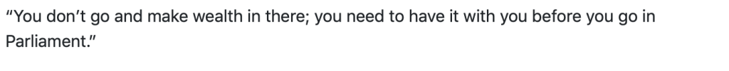 He came into Parliament as a newbie last year and learnt how to be a greedy politician very fast.