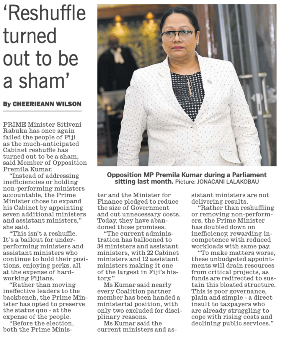 Steve (Rabuka’s) response is that the funding for the over sizing of the cabinet will come from existing budget. But our free media failed to ask where these will be reallocated from. The 24-25 budget already has the worst ever implementation ratio and CAPEX-OPEX mix. Now taxpayers will be funding for further OPEX…which will continue in the future years. They will basically borrow to fund the lavishness. This is the KEY that the coalition supporters have failed to recognize.
