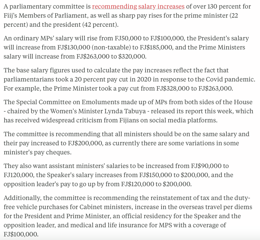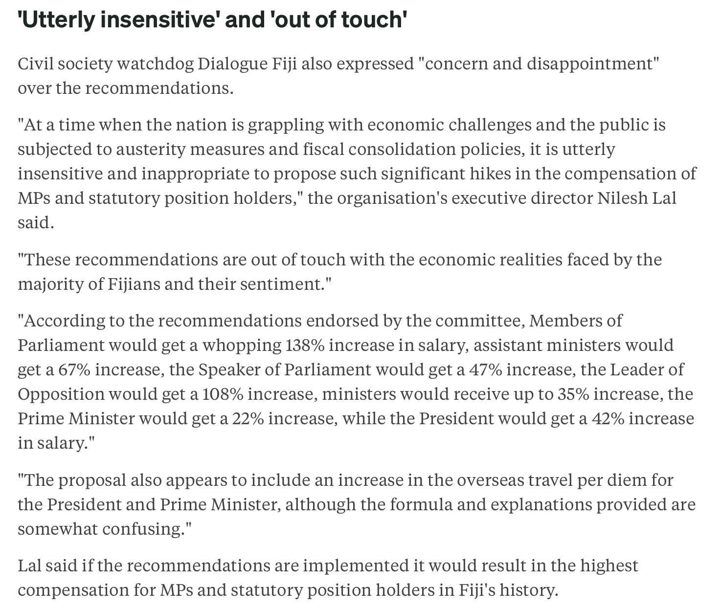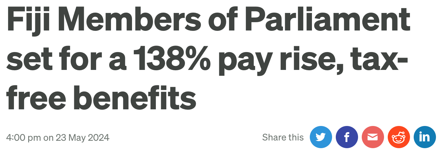 On FB I watch as banquets are prepared for ministry staff for conferences, meetings, cakes for ministers at every turn. It appears that it’s widespread on fiji for the govt and its employees to just sponge and live the good life.