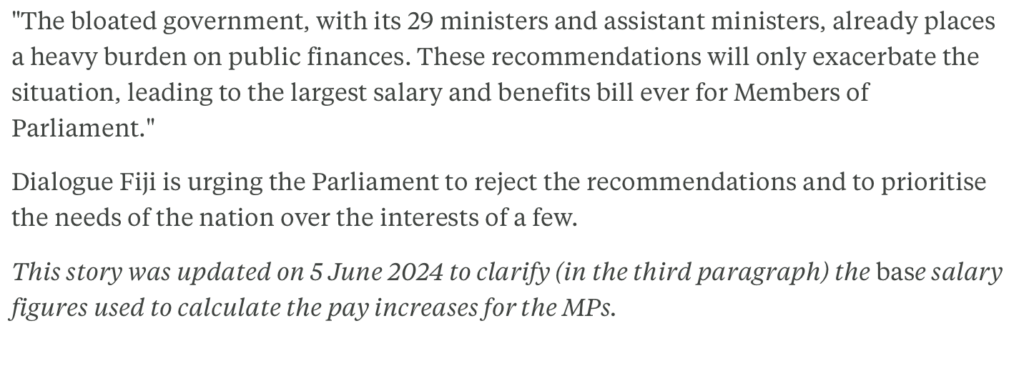 We’re giving Fiji’s 55 members of parliament the opportunity here to declare whether they have cheated those who put them there – the nation’s voters – by claiming per diem expenses for travel when it has already been paid for by their hosts.