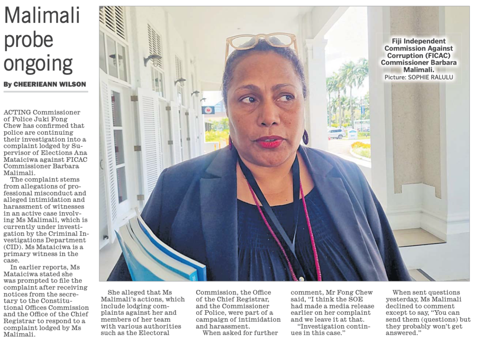 Yes, we look forward to the Commission of Inquiry findings on Barbara Malimali.