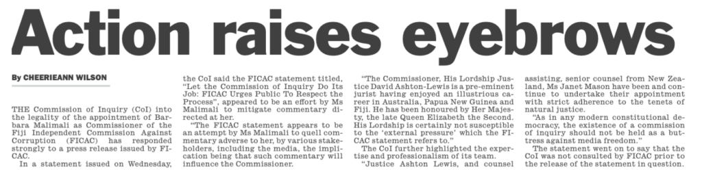 Barbara Malimali was appointed FICAC Commissioner at a lightening speed. That in itself raises a lot of questions. Definitely, there was political interference.