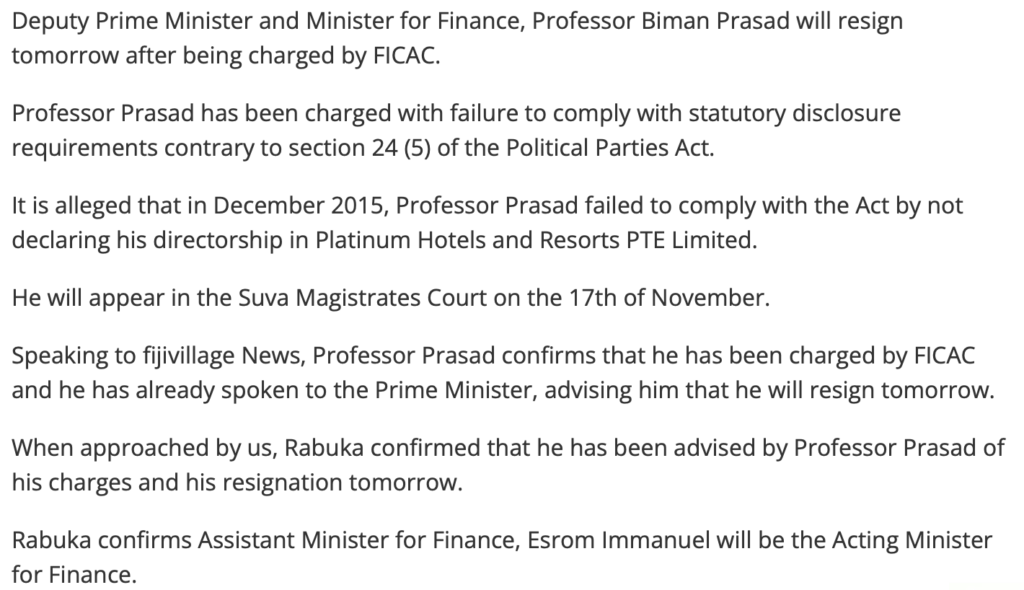More details in due course. But we reiterate the same reminder we issued last week when Manoa Kamikamica was charged. The case of now sub-judice and Biman Prasad is entitled to be presumed innocent until proven guilty.