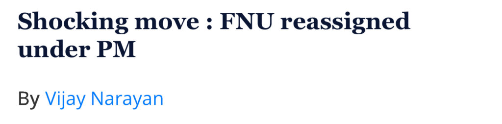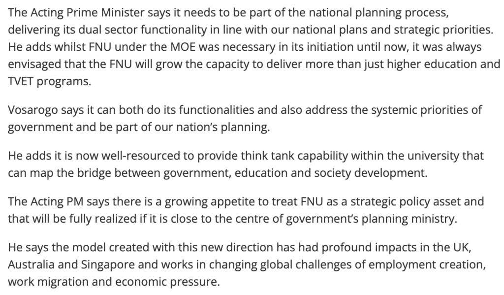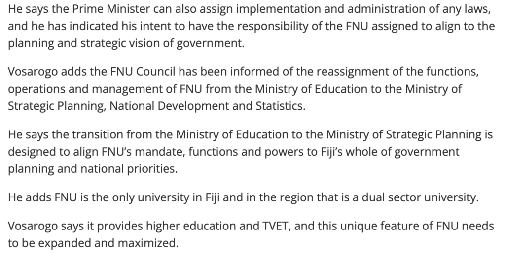 And just like that, FNU was removed from the Ministry of Education and placed under the Prime Minister’s Office, via Strategic Planning.