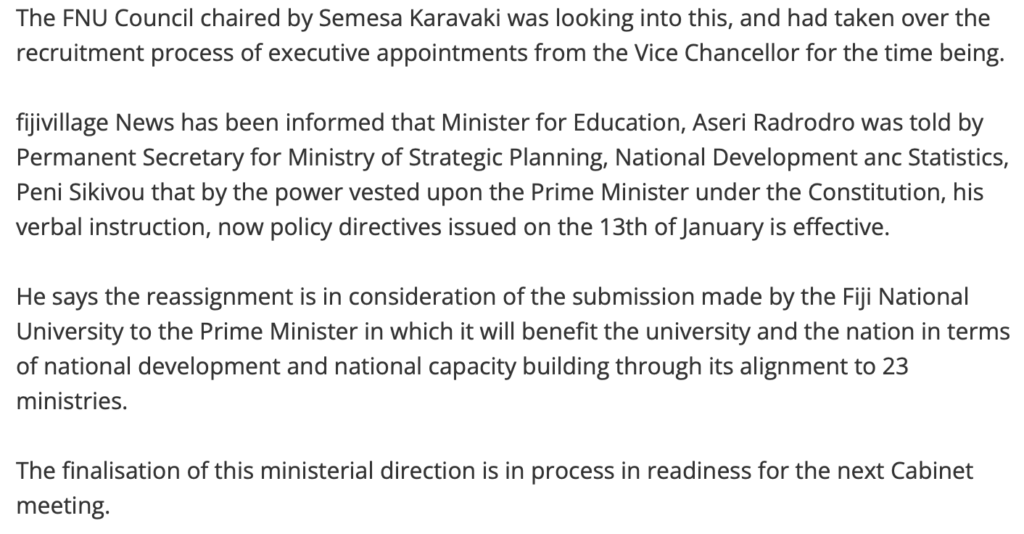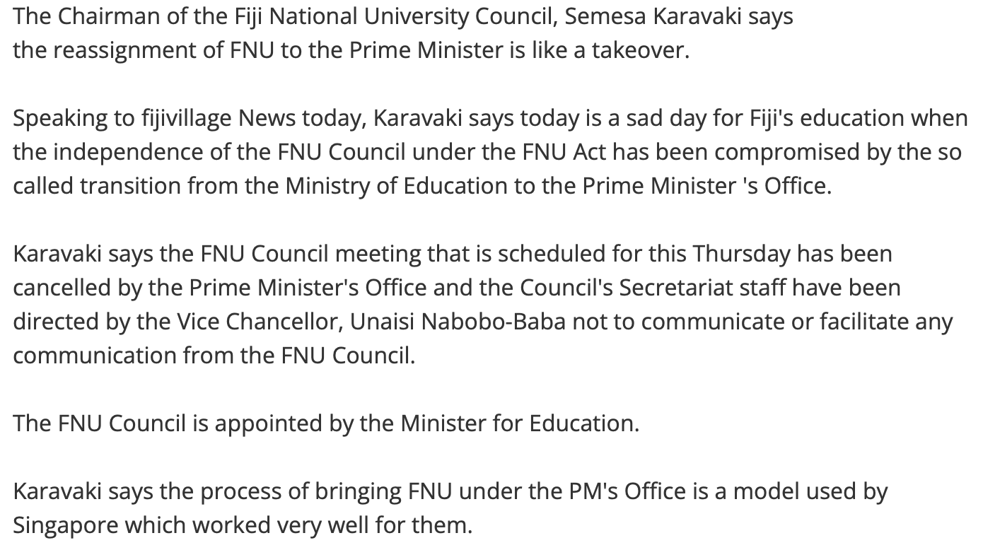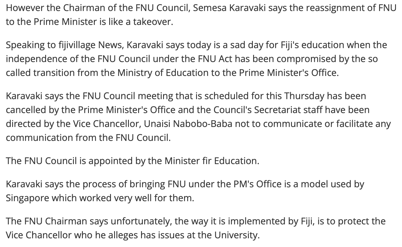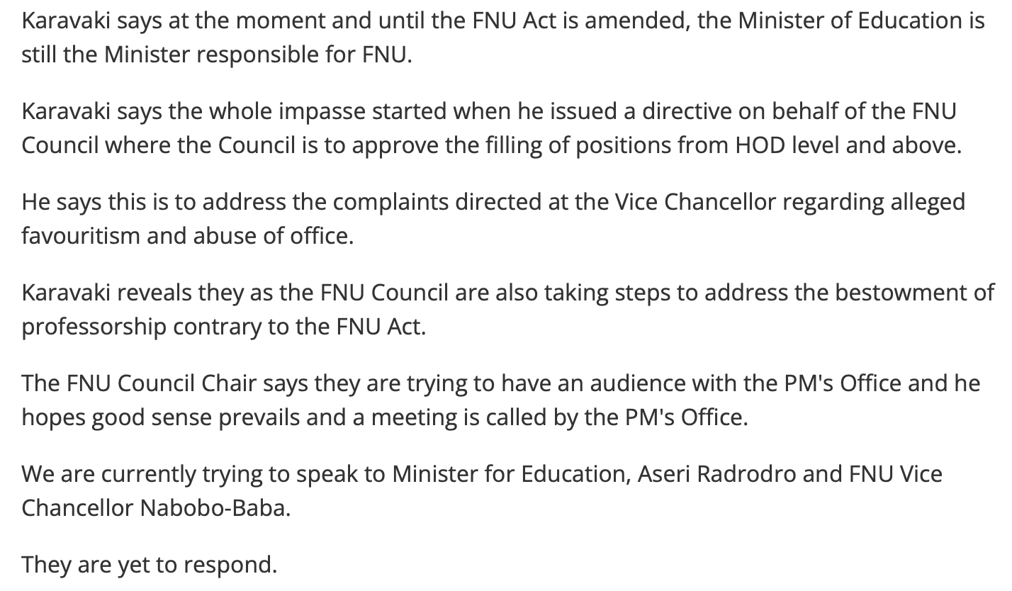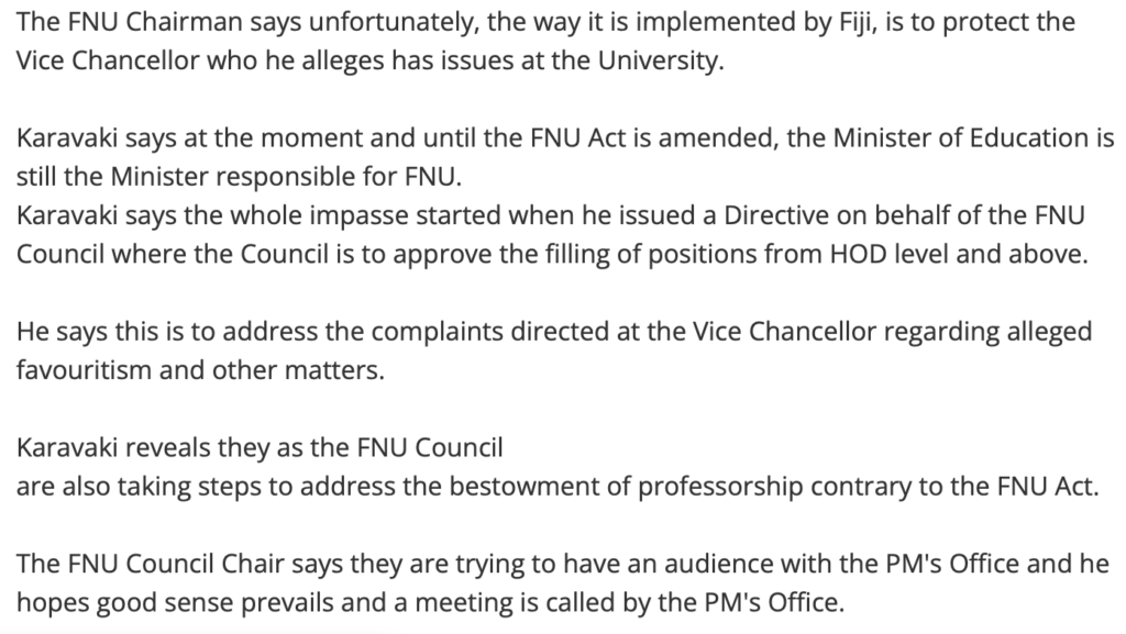 2. The FNU Council and Karavaki can’t interfere in operations of FNU. VC runs the show in all appointments. Council shouldn’t do VC’s job. It’s a governance issue.