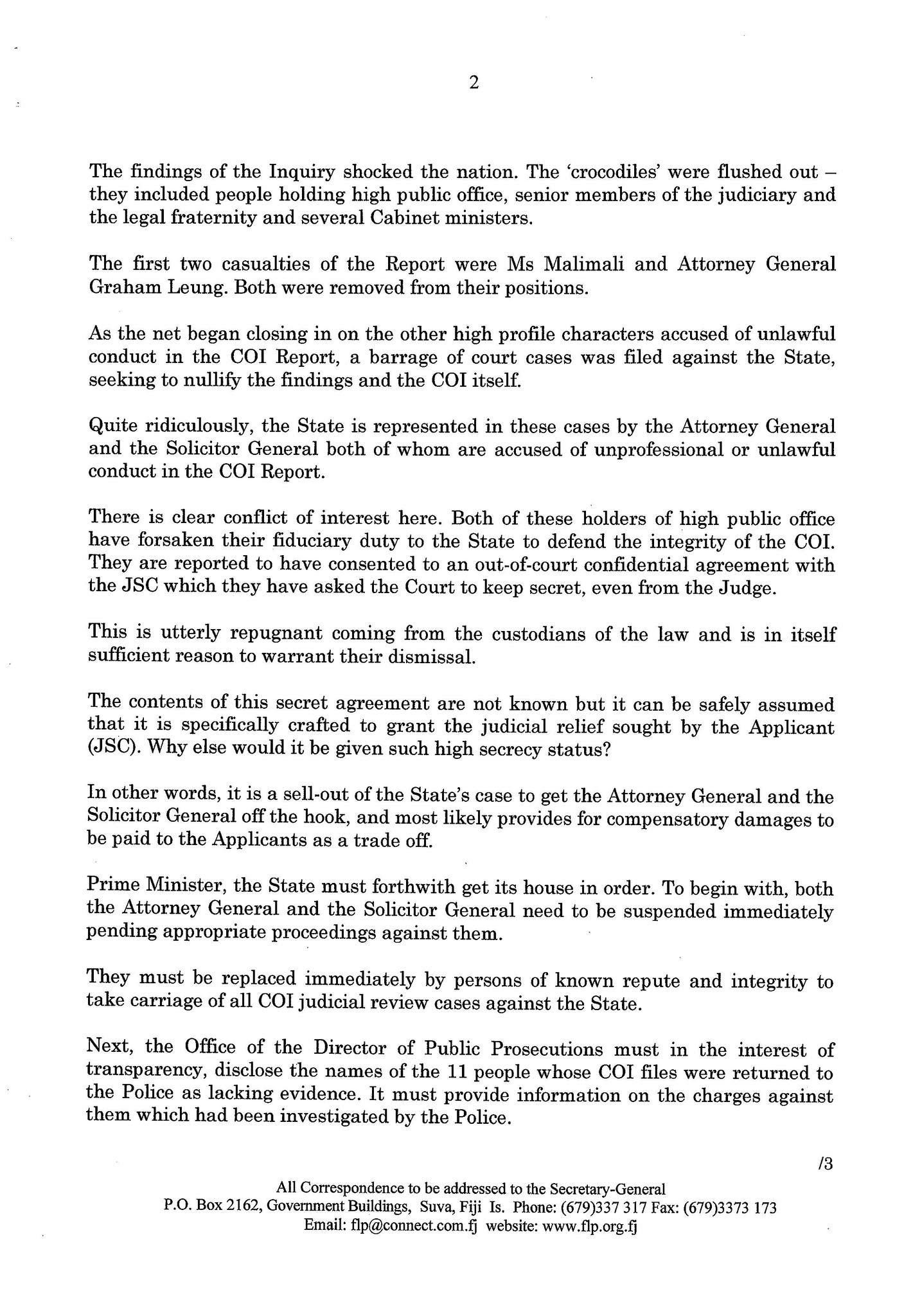 To be read in conjunction with statements from the Opposition leader, Inia Seruiratu, and his People First colleagues, Premila Kumar and Jone Usamate, that we published in our previous article.