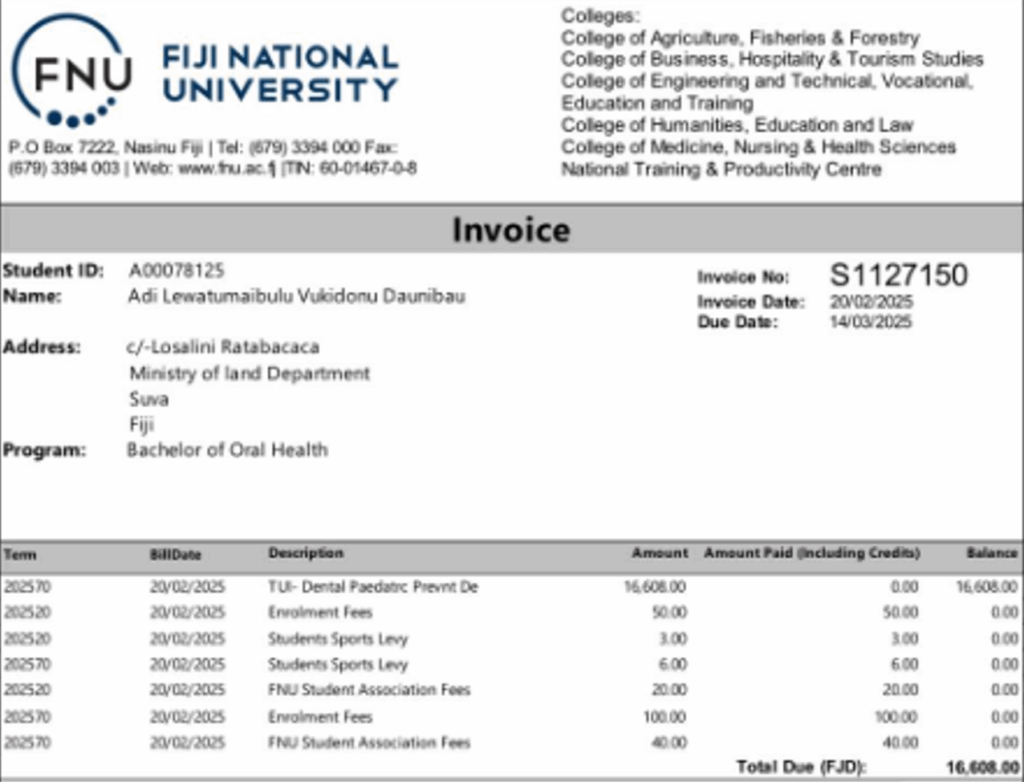 Last week, two of Fiji’s biggest social media influencers or podcasters (I introduced them in my introductory piece), Lesi Vanuavou and Bis Moce, – who have a combined 200,000 plus followers – received a plea for assistance from one Adi Lewa Daunibau, a fifth-year student doing a Bachelor’s Degree in Oral Health. She was to have sat her final exams this week, but the FNU administration had barred her due to non-payment of fees, the sum of $16,608.