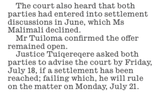 It is rather appalling that the AG’s Chambers has decided to settle the matter with the Malimali team. The AG is the legal advisor to Government. It shows how the mighty have fallen.