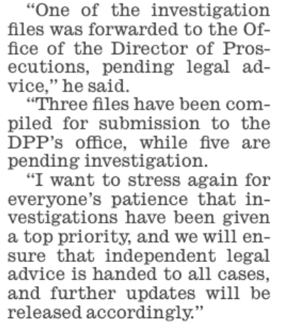 The entire response to the Supreme Court Commission of Inquiry is a total farce – a corrupt Chief Justice kept in place and corrupt prosecutors kept in place in the ODPP to “assess” criminal cases against those adversely named in the COI Report.
