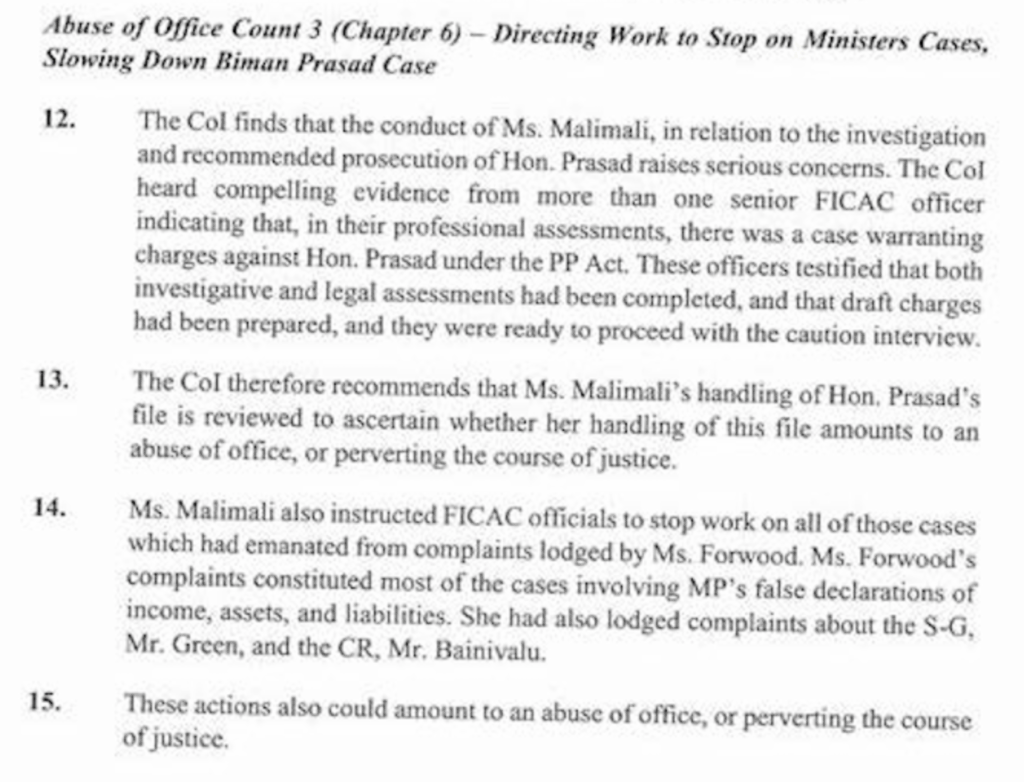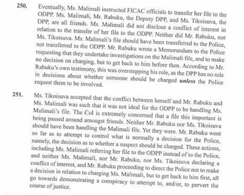 Because this is what the Commission of Inquiry Report says about the ability of Nancy and John to be independent when it comes to assessing any case against Barbara Malimali.