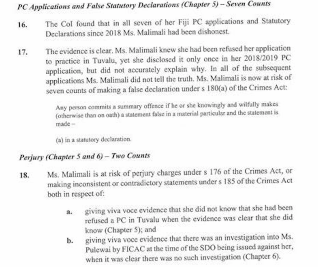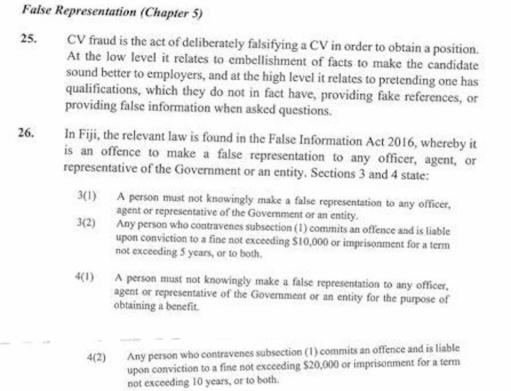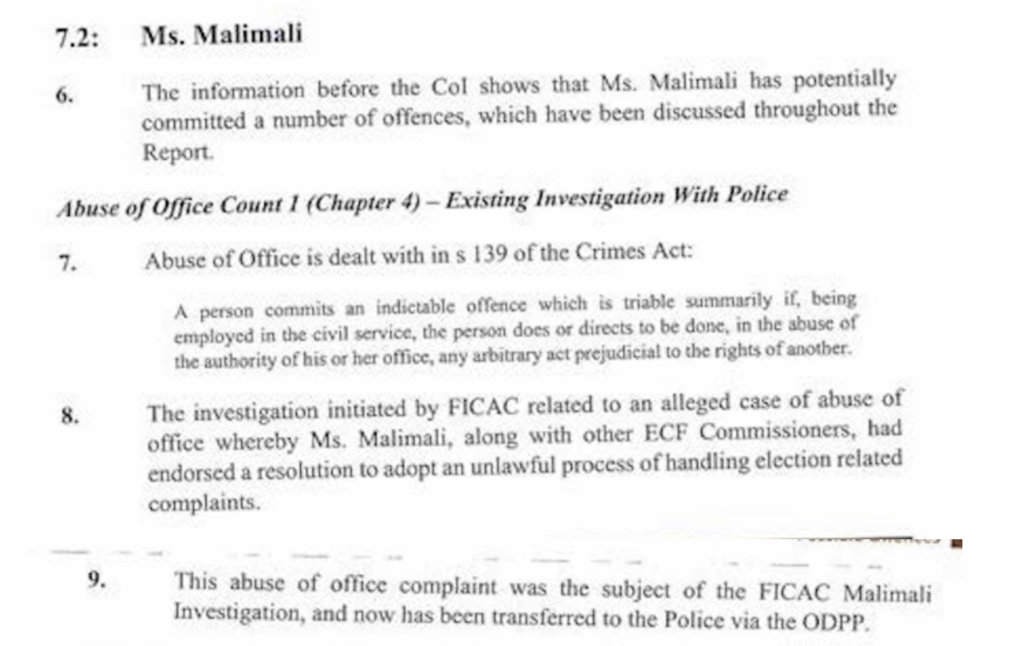 Here’s the list of “Possible Offences” Barbara Malimali has committed, detailed in the suppressed Chapter 7 of the Ashton-Lewis Report. And given the scope of her alleged wrongdoing, she should be ashamed to show her face in public, let alone look the Fijian people in the eye and demand “compensation” for her dismissal.