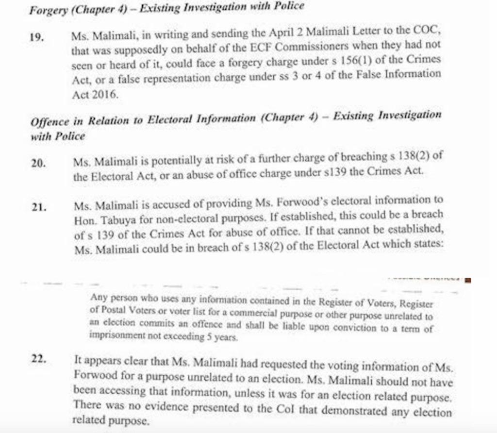 Barbara Malimali is facing possible criminal charges of abuse of office (three counts), making a false statutory declaration ( seven counts), perjury (two counts), forgery, violating the electoral laws, witness tampering, false representation and perverting the course of justice. And they want to throw money at her. Your money.