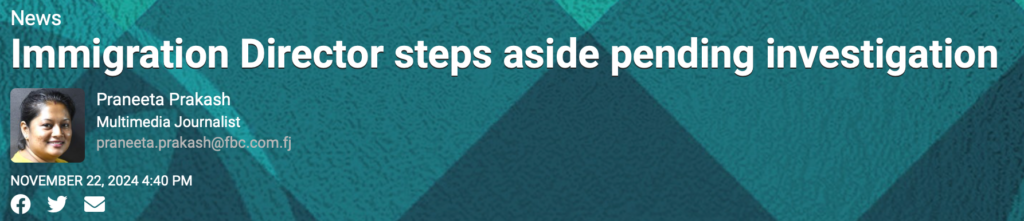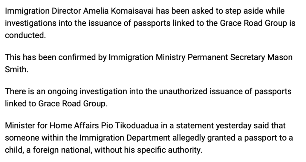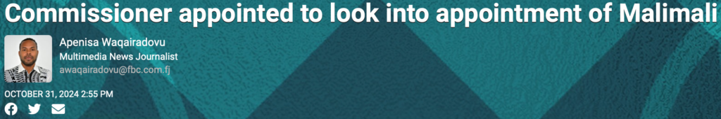It is outrageous that the Home Affairs Minister, Pio Tikoduadua – who isn’t a lawyer – appears to understand instinctively that he needs to stand aside while an official inquiry is conducted into the sensational revelations that someone has evidently been selling Grace Road passports. Yet Barbara Malimali believes she can remain as FICAC Commissioner while she is the subject of two investigations – one supposedly being conducted by John Rabuku and the second pending – the judicial inquiry into the circumstances of her appointment by Justice David Ashton-Lewis. And no-one – absolutely no-one – is calling her out.