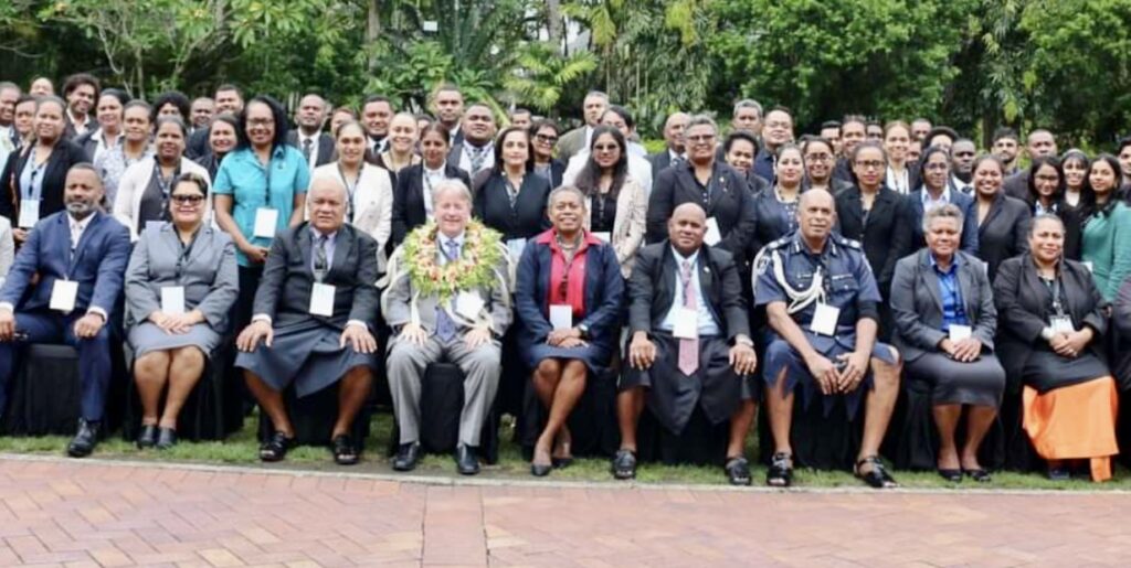 The latest outrage arises from Barbara Malimali “accepting an invitation” from the ODPP to attend its annual conference. Here she is in the official photo of the event, with the FICAC Commissioner and John Rabuku bookending the rest of the official party, including the miscreant-in-chief of the criminal justice system – the rogue Acting Chief Justice and head of the Judicial Services Commission, Salesi Temo (third from left) – and the drink-driving Chief Registrar and JSC Secretary, Tomasi Bainivalu (fourth from right.)