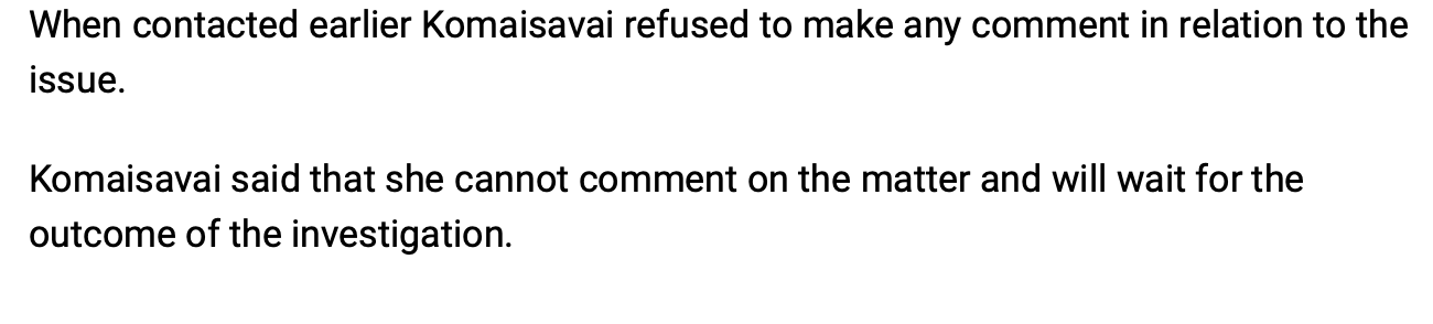 What happened? Nothing. No response from Salesi Temo, no response from Graham Leung and no response from the silent hand in all of this – the Prime Minister, Sitiveni Rabuka. On the contrary, Barbara Malimali and John Rabuku have doubled down – Rabuku inviting the FICAC Commissioner to attend the ODPP conference with him. It is an astonishing defiance of normal convention and an astonishing double standard given that Christopher Pryde is still waiting for justice to be dispensed when, unlike John Rabuku, he wasn’t investigating anyone. A police file on Aiyaz Sayed-Khaiyum had yet to reach his desk.