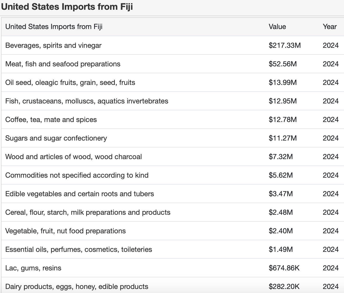 There’s no reading it the other way around. $347 Million USD worth of Fiji exports going to the USA.