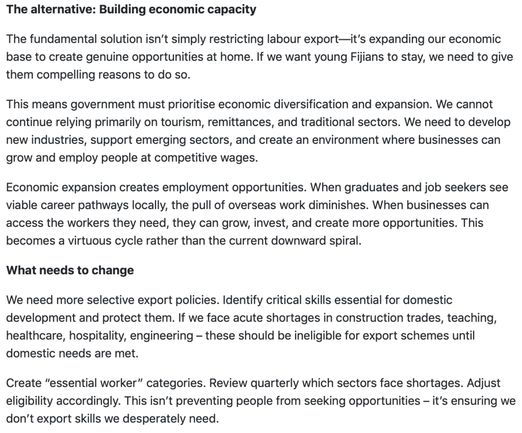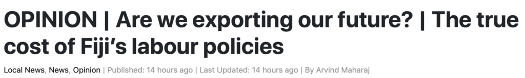 As Arvind Maharaj says, Fiji is building the economic capacity of countries like Australia and New Zealand but destroying its own. And urgent action is needed now to stem the outflow and address its consequences before it’s too late.