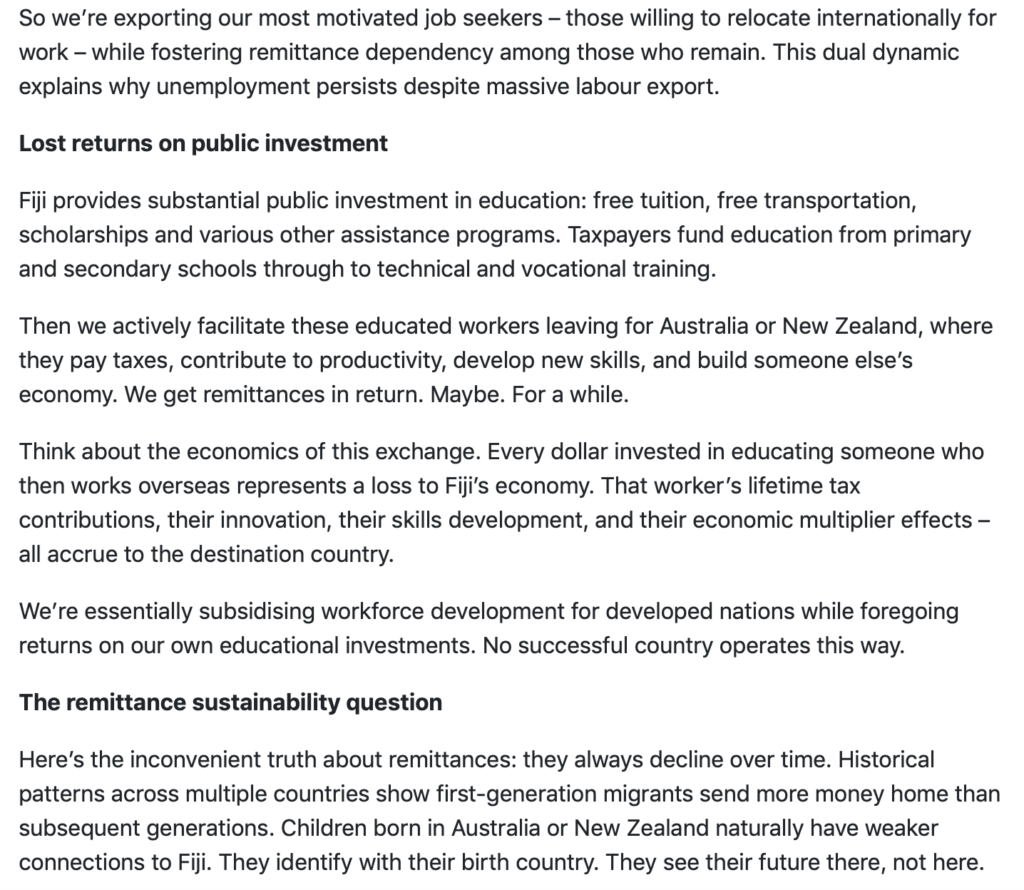 # IF YOU DON’T READ ANYTHING ELSE THIS WEEK, AT LEAST READ THIS. THE REAL IMPACT OF THE MASS EXODUS FROM FIJI