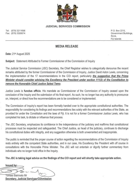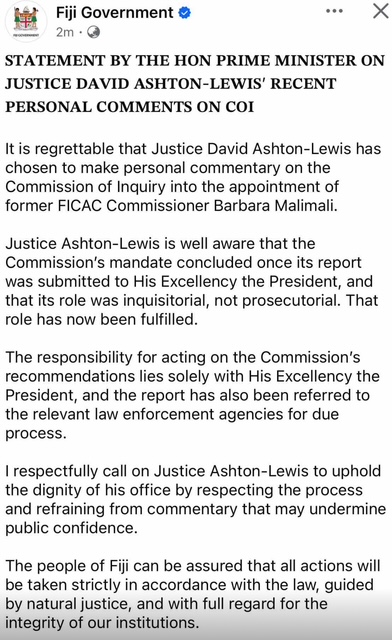 I am deeply concerned about the recent conduct of Justice Temo, which, in my view, raises serious questions about judicial impartiality, fairness, and the proper administration of justice in Fiji. There appears to be a troubling pattern of pre-empting charges against individuals who have not yet been convicted, potentially undermining the presumption of innocence. Cases involving former Fiji First members seem to receive selective attention, creating an appearance of political bias within the judiciary.