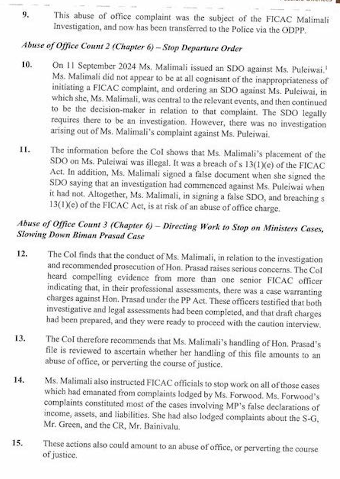 This extends to the nation’s two chief prosecutors, Acting DPP Nancy Tikoisuva and Deputy DPP John Rabuku, who are also being kept in place despite being adversely named in the COI Report. They are not independent but are part of this conspiracy, with the substantive DPP, Christopher Pryde, still sidelined after more than two years and now charged with abuse of office on trumped-up charges, having already been exonerated by the Tuilevuka Tribunal.