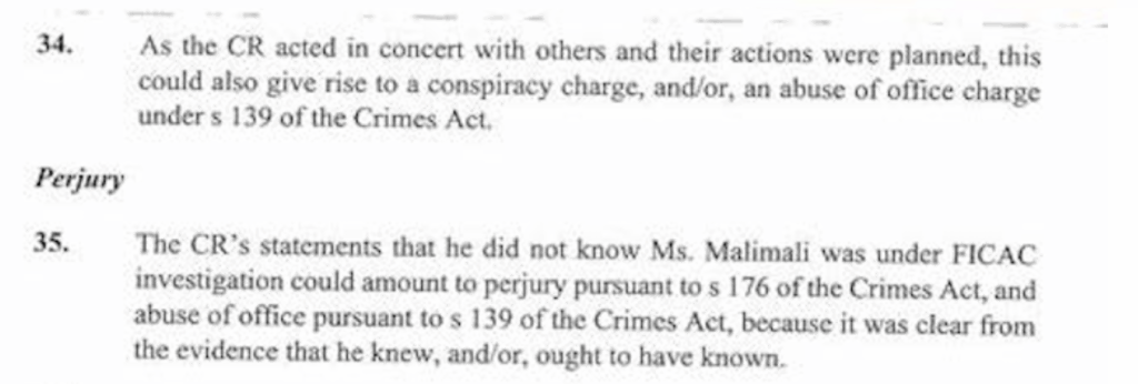 Wylie Clarke has also been accused of perverting the course of justice in the COI Report and Richard Naidu succeeded in getting FICAC to delay charging his client and political ally with making a false income declaration to the Elections Office. Barbara Malimali was then parachuted in and closed the case on Biman Prasad.
