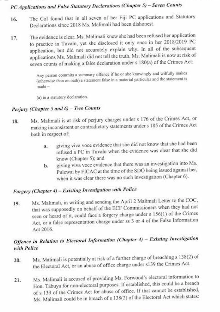 The full “Possible Offences” list in the COI Report. And the reason Justice Ashton-Lewis finds himself in the firing line.