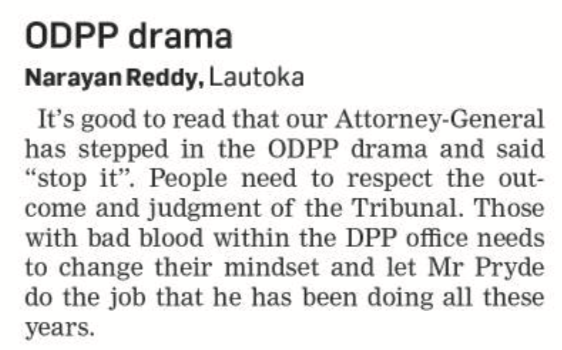 The commission that oversees the appointment of staff in the office of the DPP should be very aware of the impending workplace crisis when Pryde starts work – does anyone think that the office will perform its function well with the current lot of pretenders. It is in the public interest and in the interest of the legal system that the band of mutineers ( Ribuku, Nanise etc) be made to walk the plank and let Pryde steer the ship professionally.