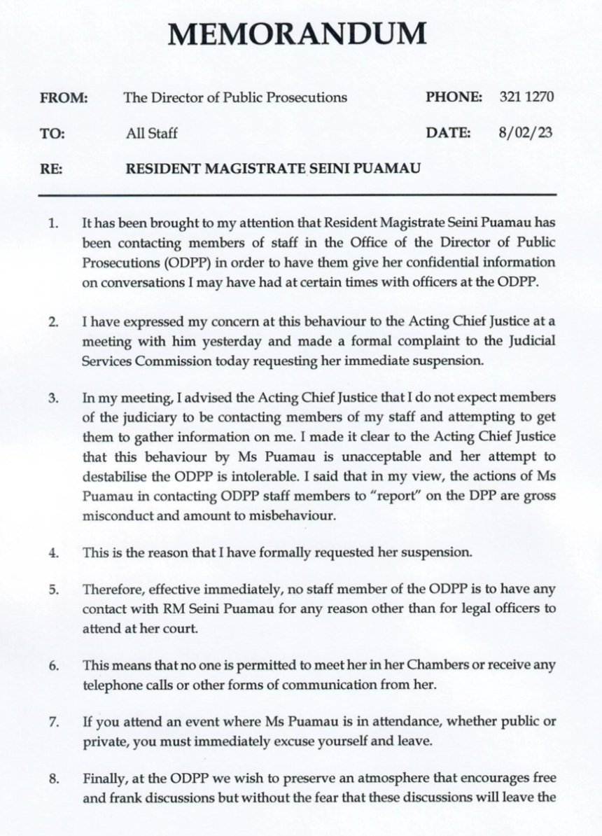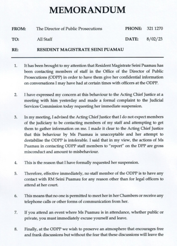 The DPP’s memo to his own staff about the activities of Resident Magistrate Seini Puamau. Was Susana Vuniyani part of this conspiracy?
