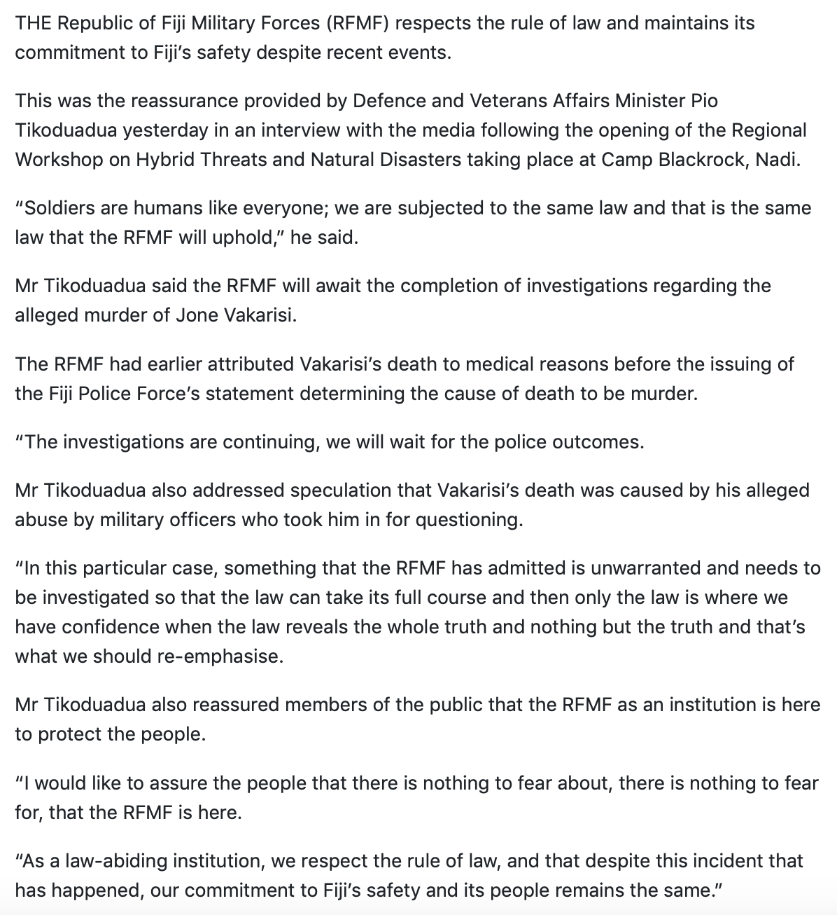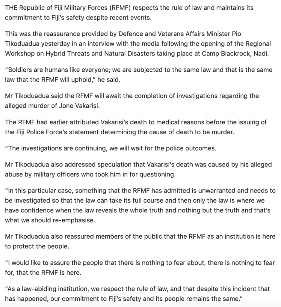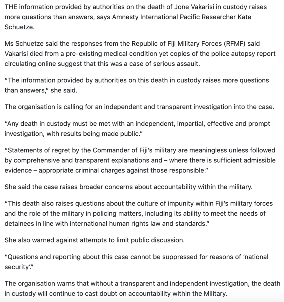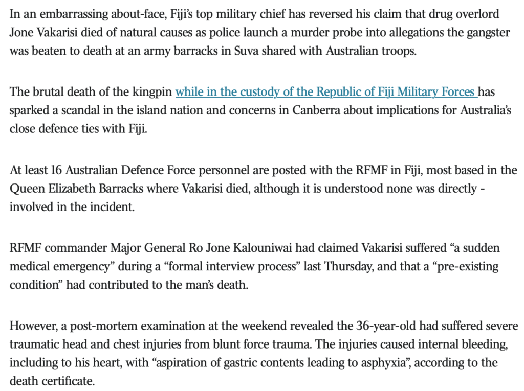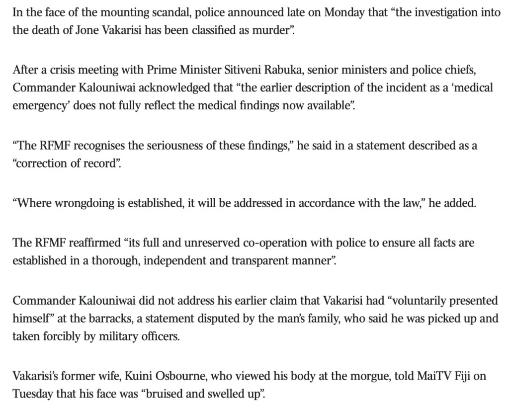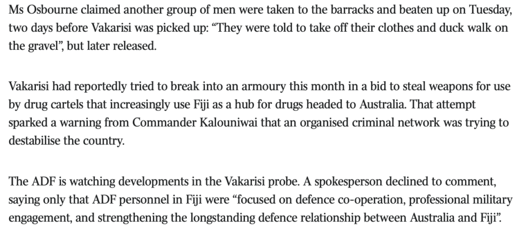 More damning publicity for the RFMF and Fiji as a whole from the foreign media…