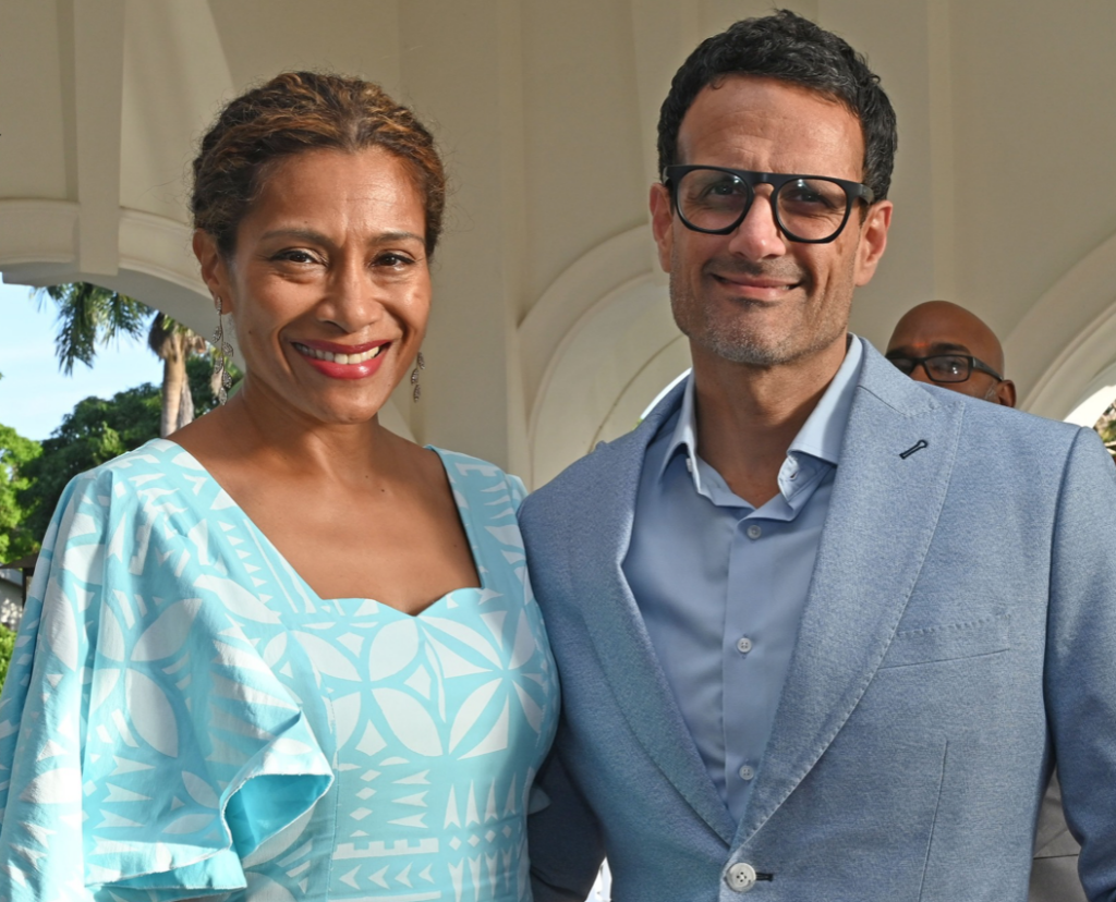 Even more brazen is a photo of Lynda and Rob standing next to the British High Commissioner to Fiji, Kanbar Hossein-Bor, who evidently doesn’t know the colourful history of Mr and Mrs Semaan or he’d be standing somewhere else.