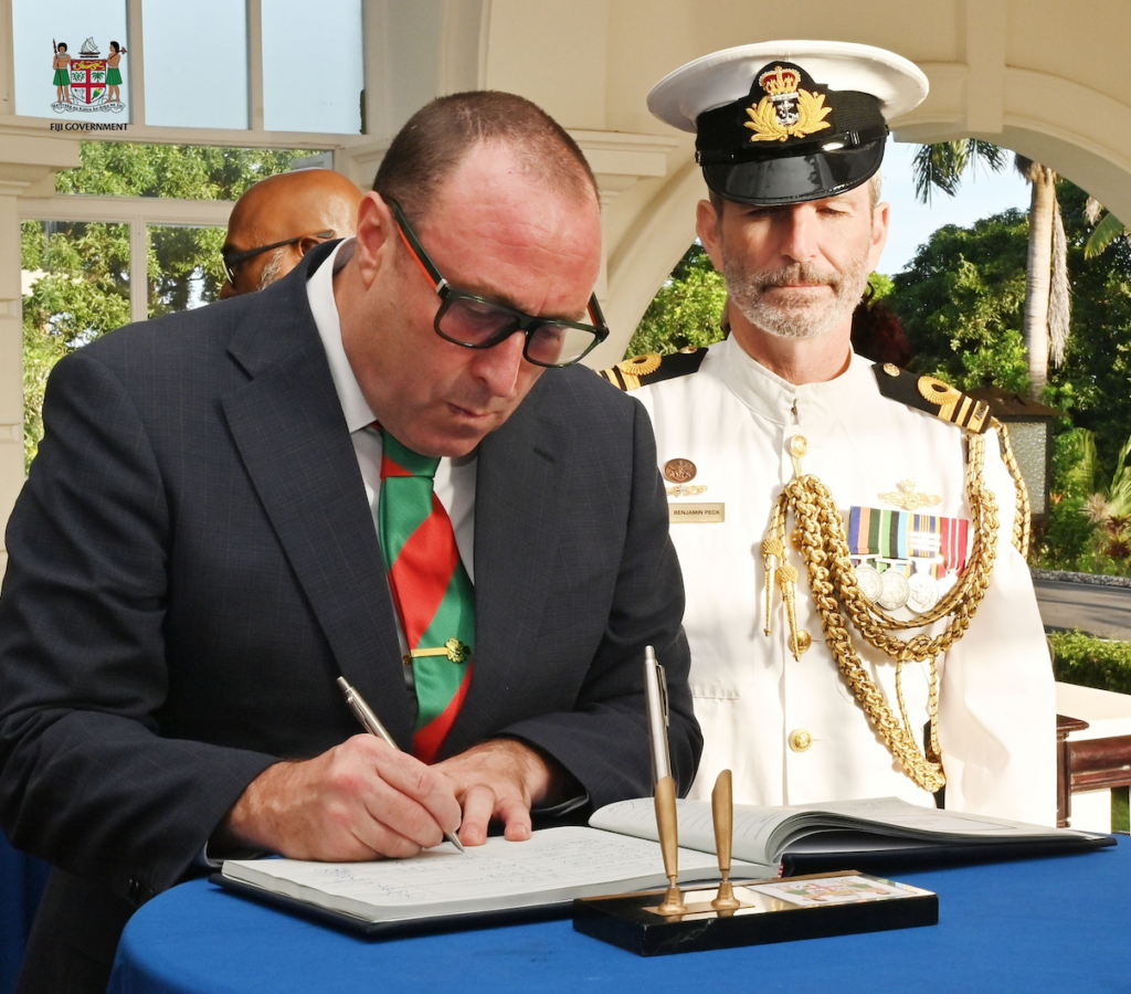 The message to China is that the Aussies and the RFMF are close. That close that the top Aussie diplomat in Fiji wears an RFMF tie to a state event. And both the Aussies and the British are so close they’ve taken to wearing Fijian national dress. Will the Chinese Ambassador soon don a sulu in a tit-for-tat response?