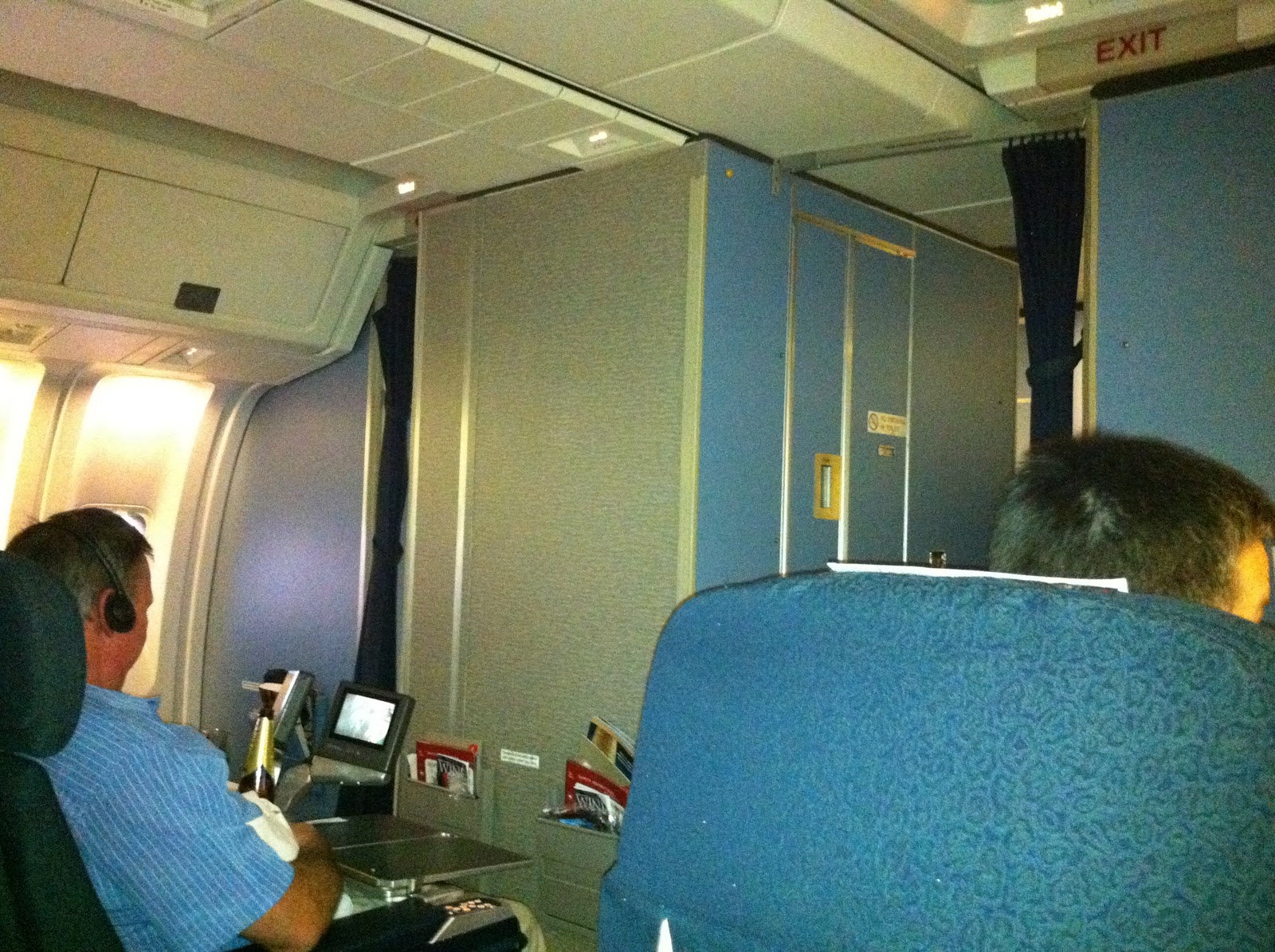 Today – as the nice lady on the PA system tells us – “we’re flying on a Boeing 767. Every aircraft is different, blah, blah, blah”. We know. Airfleets.Net tells us there are twenty-six 767s in the Qantas fleet with an average age of 17.7 years, older than the average age of its venerable global workhorse – the 747 – at 16.2 years. Of the 107 airlines worldwide which operate this aircraft, Qantas ranks 67th in fleet age, or close to the bottom third. Hmm. How old is this one, we wonder? The decor is decidedly 1980s, with a mottled slate grey bulkhead and overhead lockers fraying at the seams. Oh, it probably doesn’t matter if they look after the mechanics properly. The problem is that Qantas’s own maintenance staff are at war with the airline, using the media as a battlefield. They’ve made the startling claim that safety standards are being compromised by the company’s policy of shifting maintenance offshore. The Qantas management denies this emphatically. But who is the travelling public to believe?