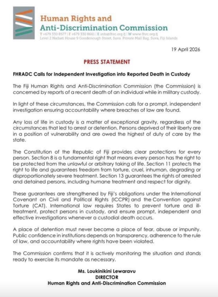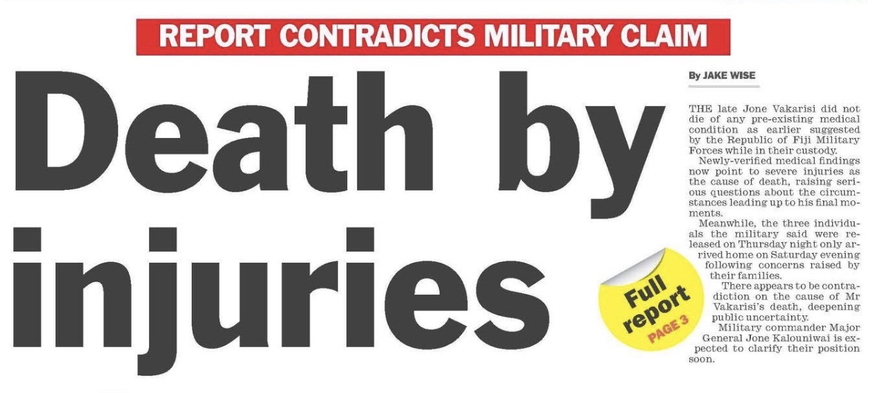 It is appalling the Comm. RFMF states this death was a sudden and natural one when the autopsy reports state the bloke was bludgeoned to death. This is exactly what happened to the other people who died at the military camp. Not only has he lied to the nation, he has also shown that he is willing to go the extra mile to cover up this murder at any cost and he knows the government will not get rid of him. He is the only Commander ever to come through the RFMF who spends his time boot-licking, brown nosing, grovelling around and apologising for the RFMF’s past actions.