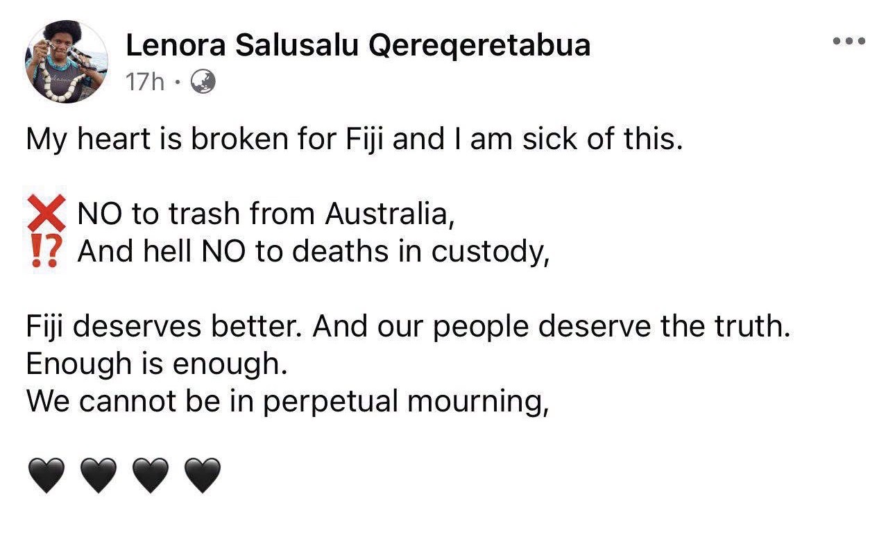 Re Lenora Salusalu Qeregeretabua , I had hoped she was smarter than making a comment about trash from Australia.