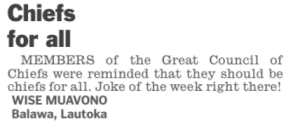 Sa dina, Wise. And the sickest joke of the week was the spectacle of the Attorney General, Siromi Turaga, hobnobbing at the GCC with the Qaranivalu - the high chief of Naitasiri, Ratu Inoke Takiveikata - who he recently freed from prison after the Qaranivalu served a 13 year sentence for instigating the mutiny in the RFMF in 2000. Siromi Turaga … [Read more...] about # WISE BY NAME, WISE BY NATURE