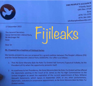 We now have conclusive proof that Professor Biman Prasad sold out the interests of non-indigenous Fijians by agreeing to a Coalition arrangement that put the interests of the iTaukei first. There is no other explanation given the emergence of the Coalition offer made by the People’s Alliance to SODELPA as the price of securing its support to be … [Read more...] about # HARD EVIDENCE OF THE GREAT BETRAYAL