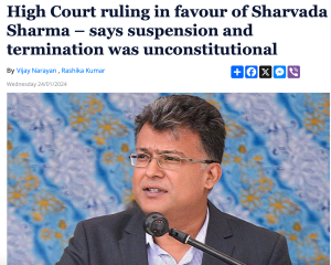Vindication for a man of honour and substance and a dedicated public servant. The former Solicitor General wins his High Court action declaring that his sacking by the previous government was unconstitutional. What happens now? If justice means anything, Sharvada Sharma should be re-instated and the current SG, Ropate Green Lomavatu, should be … [Read more...] about # SHARVADA SHARMA WINS