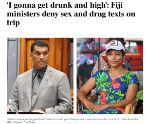 The venerable Times of London does what the Fiji Times refuses to do - report the sex and drug scandal involving Aseri Radrodro and Lynda Tabuya that has enveloped the Coalition government but is being mostly ignored in the Fijian media. Nothing illustrates the hollowness of the so called new era of media freedom in Fiji more than the fact that … [Read more...] about # ASERI AND LYNDA GO GLOBAL