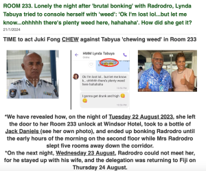 The confirmation by the Acting Police Commissioner, Juki Fong Chew, that the Cyber Crime Unit of the Force is examining a complaint against Grubsheet by Lynda Tabuya in relation to an allegedly fake photograph we published raises a number of pressing questions. Is the Fiji Police Force also investigating other images that Lynda Tabuya sent to … [Read more...] about # SOME ANSWERS PLEASE, ACTING COMMISSIONER