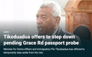 The shocking revelation that Fijian passports have been issued to the children of Grace Road members without official authorisation is rocking the government to its core. But for once, the responsible minister, Pio Tikoduadua, is giving the nation a masterclass in proper conduct vastly at odds with others in the "New Order". Last night, the Home … [Read more...] about # CORRUPTION AT THE HEART OF THE STATE. PART ONE