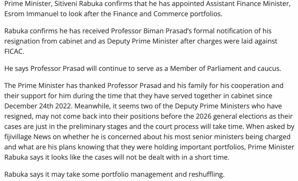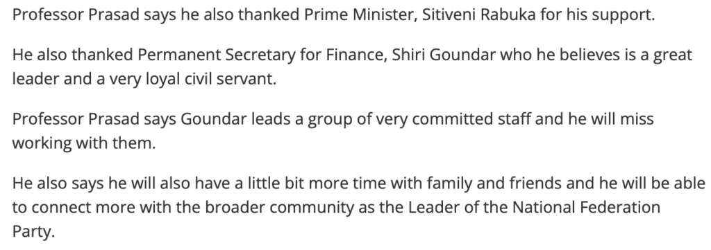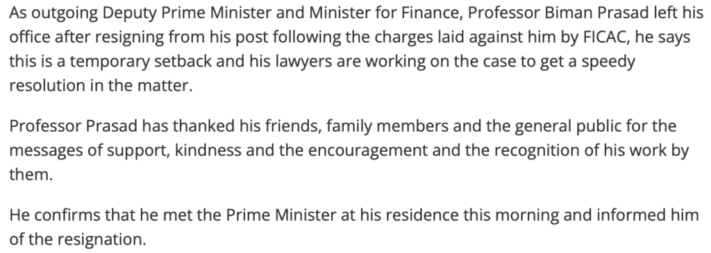 I, for one, fundamentally disagree with your proposition that he has put Fiji on the “right track”. On the contrary, the nation has never been in a more parlous state. While Biman Prasad has to answer the criminal charges against him in the courts, he also has to answer to the court of public opinion. That will happen soon enough. And my own view is that he is already toast.