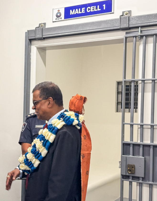 Enduring images from Biman Prasad’s last public appearance before he was charged – the opening of the Nakasi Police Station.