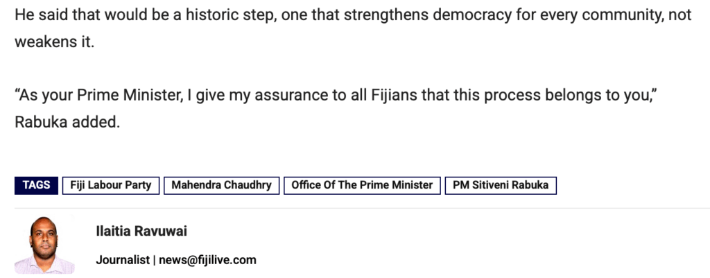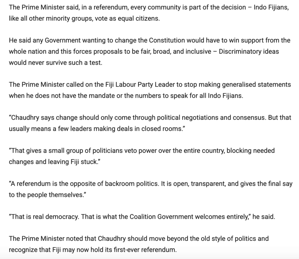 I am keen to see how they will spin the narrative of removing equal rights and the Fijian name for all.